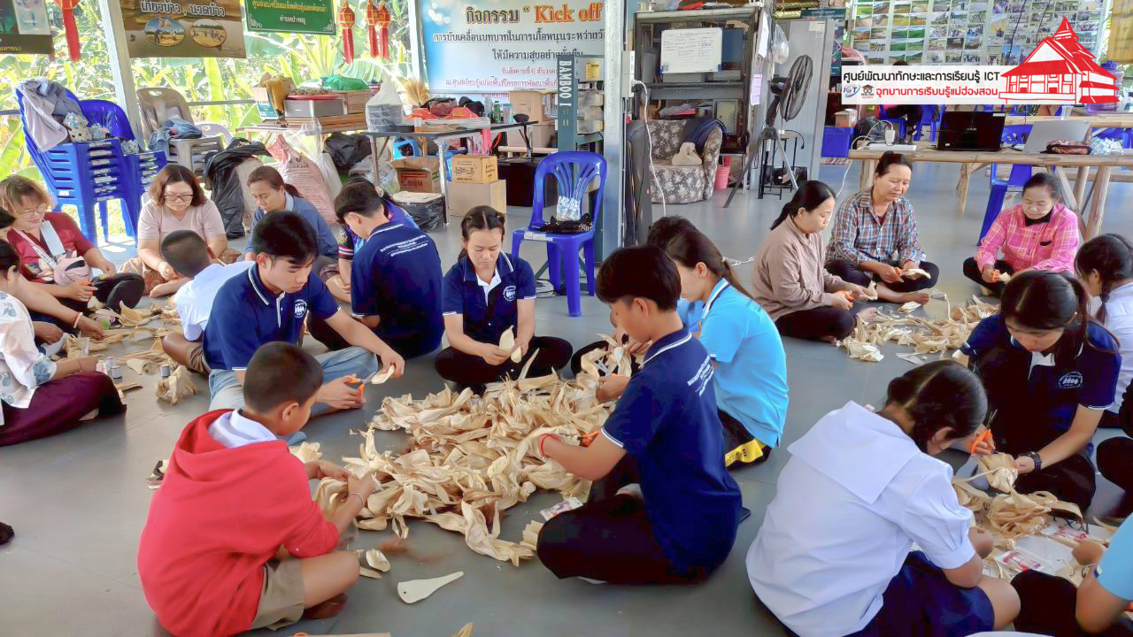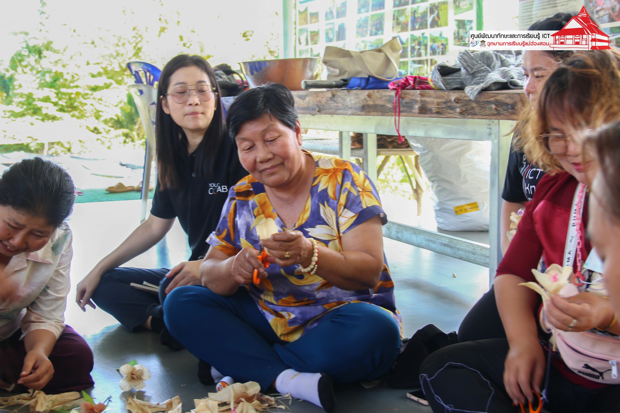 ศูนย์พัฒนาทักษะและการเรียนรู้ ICT อุทยานการเรียนรู้แม่ฮ่องสอน วิทยาลัยชุมชนแม่ฮ่องสอน โดย อาจารย์เอมอร ลิ้มวัฒนา หัวหน้าศูนย์ ICT อุทยานการเรียนรู้แม่ฮ่องสอน อาจารย์วิทยาลัยชุมชนแม่ฮ่องสอน จัดกิจกรรมส่งเสริมทักษะการเรียนรู้ “สร้างงาน สร้างอาชีพ มีรายได้ ด้วย ICT” ตามแนวคิด BCG & SDGs หลักสูตร พัฒนาทักษะดิจิทัลเพื่อการประกอบธุรกิจ สำหรับผู้ประการ ผู้ว่างงาน นักเรียน นักศึกษา และชุมชน ในการสร้างสรรค์เพิ่มมูลค่า เปลี่ยนวัสดุเหลือใช้ให้มีมูลค่า อาทิ การสานตะกร้าจากกล่องนม การประดิษฐ์ดอกไม้จากเปลือกข้าวโพด การทำกระเป๋าจากขยะรีไซเคิล การทำผ้าคาดศรีษะและผ้าผูกเอว ตลอดจนการถ่ายภาพ ตัดต่อวิดีโอ เผยแพร่ในช่องทางออนไลน์ แก่กลุ่มวิสาหกิจชุมชนบ้านในสอย เยาวชนศูนย์การเรียนชุมชนบ้านในสอย และเยาวชนบ้านห้วยโป่งอ่อน วิทยากร โดย คุณศุภสิทธิ์ จิตอารีย์, คุณชญาภา เครือทอง, คุณสมบัติ เคอเส่อ, คุณรุ่งนภา ก้องกังวาลไพร และอาจารย์เอมอร ลิ้มวัฒนา ขอขอบคุณเจ้าของสถานที่ คุณพเยาว์ สันติกรรม และคุณไมตรี แกเกิดเมื่อวันที่ 26 - 27 กุมภาพันธ์ 2569 มีผู้เข้าร่วมกว่า 40 คน ณ สวนญาดาเกษตรผสมผสาน อำเภอเมือง จังหวัดแม่ฮ่องสอน