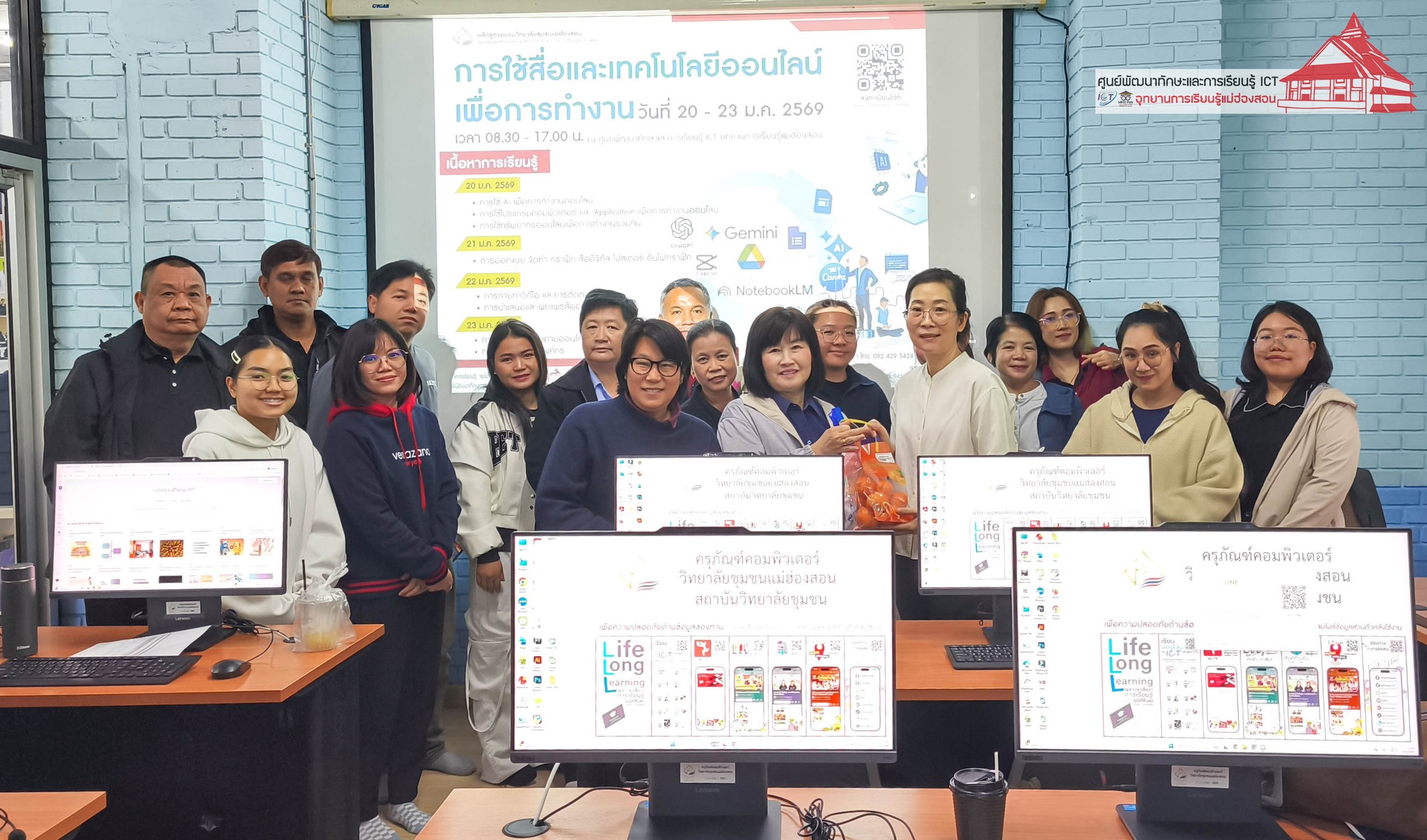 ศูนย์พัฒนาทักษะและการเรียนรู้ ICT อุทยานการเรียนรู้แม่ฮ่องสอน วิทยาลัยชุมชนแม่ฮ่องสอน จัดอบรมหลักสูตร “การใช้สื่อและเทคโนโลยีออนไลน์เพื่อการทำงาน” ระหว่างวันที่ 20 - 23 มกราคม 2569 เวลา 08.30 - 17.00 น. ณ ห้องอบรมคอมพิวเตอร์ ผู้เข้าร่วมอบรม 25 ราย จากหน่วยงานภาครัฐ เอกชน และชุมชนจังหวัดแม่ฮ่องสอน กล่าวเปิดการอบรมโดย อาจารย์เอมอร ลิ้มวัฒนา ครูชำนาญการ วิทยาลัยชุมชนแม่ฮ่องสอน หัวหน้าศูนย์พัฒนาทักษะและการเรียนรู้ ICT อุทยานการเรียนรู้แม่ฮ่องสอน วิทยากร โดย อาจารย์จีรัง คำนวณตา อาจารย์ประจำมหาวิทยาลัยราชภัฎเชียงใหม่ วิทยาเขตแม่ฮ่องสอน, นายปดิธร แสงคุณ, นายสมบัติ และอาจารย์เอมอร ลิ้มวัฒนา ครูชำนาญการ วิทยาลัยชุมชนแม่ฮ่องสอน หัวหน้าศูนย์ ICT อุทยานการเรียนรู้แม่ฮ่องสอน การอบรมมุ่งเน้นการฝึกปฏิบัติทักษะการใช้โปรแกรมคอมพิวเตอร์และ Application สำหรับการทำงานออนไลน์ การใช้ทรัพยากรออนไลน์ร่วมกัน การสร้างแบบสำรวจและแบบสอบถามออนไลน์ การจัดทำกราฟิค สื่อ การประชาสัมพันธ์ การถ่ายทำและตัดต่อคลิปวิดีโอ การจัดทำเว็บไซต์ องค์กร